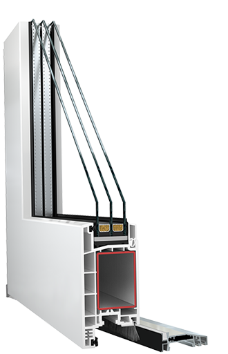Жёсткая система профилей для производства дверей с усилением по периметру гарантирует высокую прочность конструкции и длительное надёжное функционирование пластиковой двери.